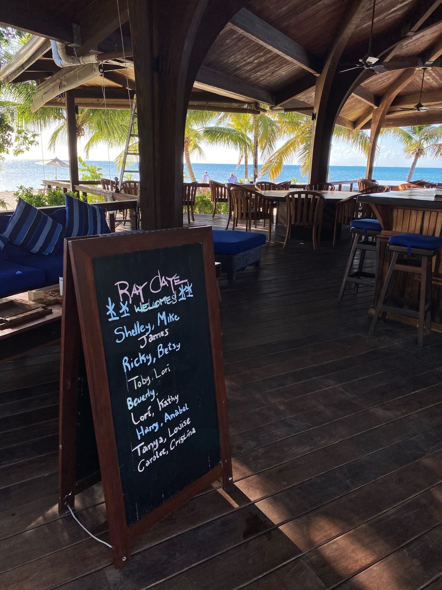 We’re first greeted by drinks for a sweet welcome, then given a short tour of the island: from the brick-red pathway, Cynthia leads us past the gift shop full of local goodies (including photo prints from staff) and lobby that’s made for lounging (with extra books to match) towards the airy Lionfish Grill. Its entrance has a blackboard with our names on it, and Cynthia explains that the very same board transforms into the nightly menu by dusk.