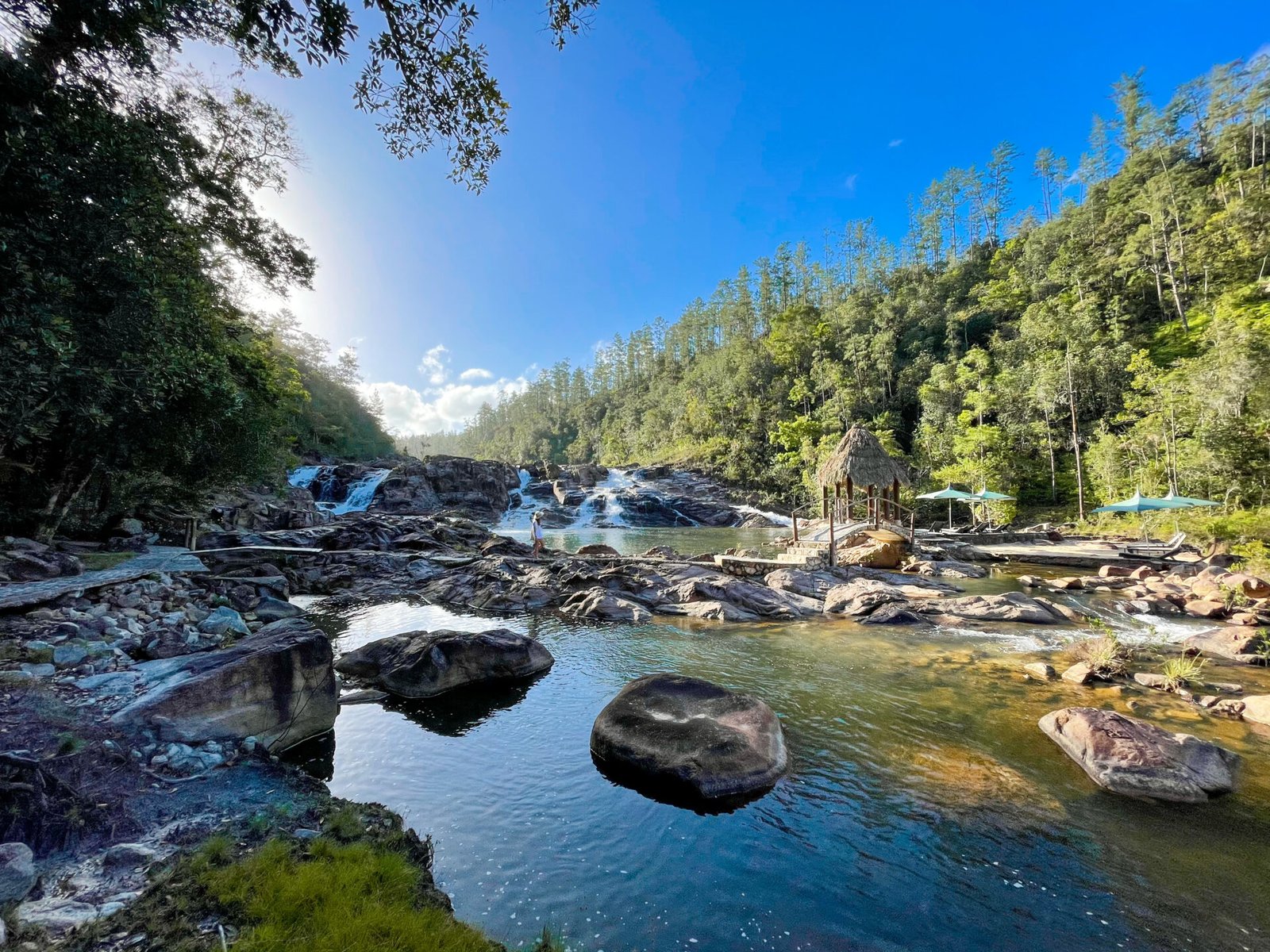 - Listen to the sound of the cascades while dining at the Five Sisters Restaurant. Photo by ROEming Belize