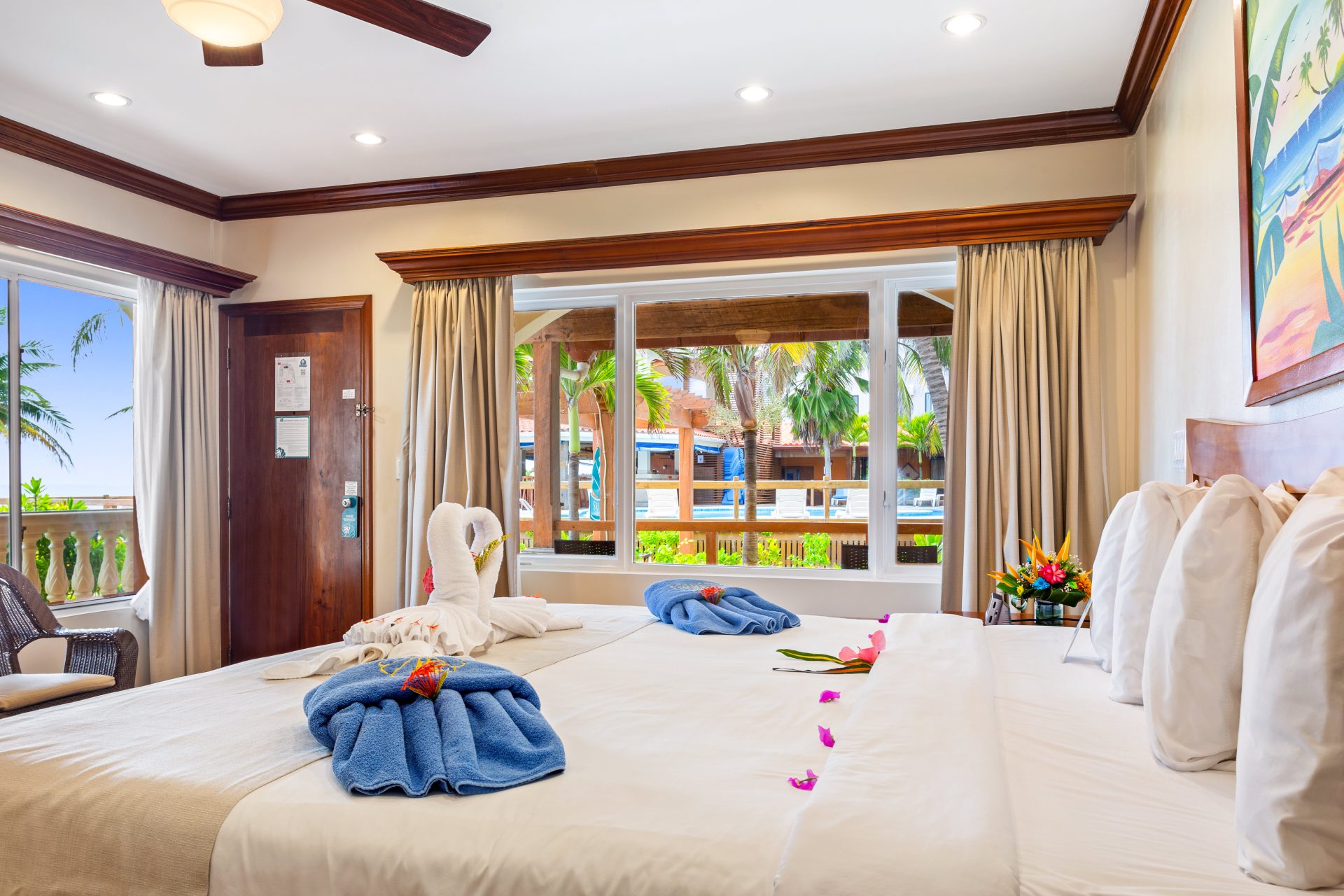 Nestled along the Caribbean coastline where ocean waves awaken guests each morning, SunBreeze faces the Belize Barrier Reef, a UNESCO heritage designee that can be seen by astronauts from outer space. Other delights are totally earthbound, like opportunities to meet the nation’s wildlife treasures, prowl Maya temples and caves, trek rainforests and jungles, and behold travel magazine-worthy waterfalls tucked into surprising places in the wild.