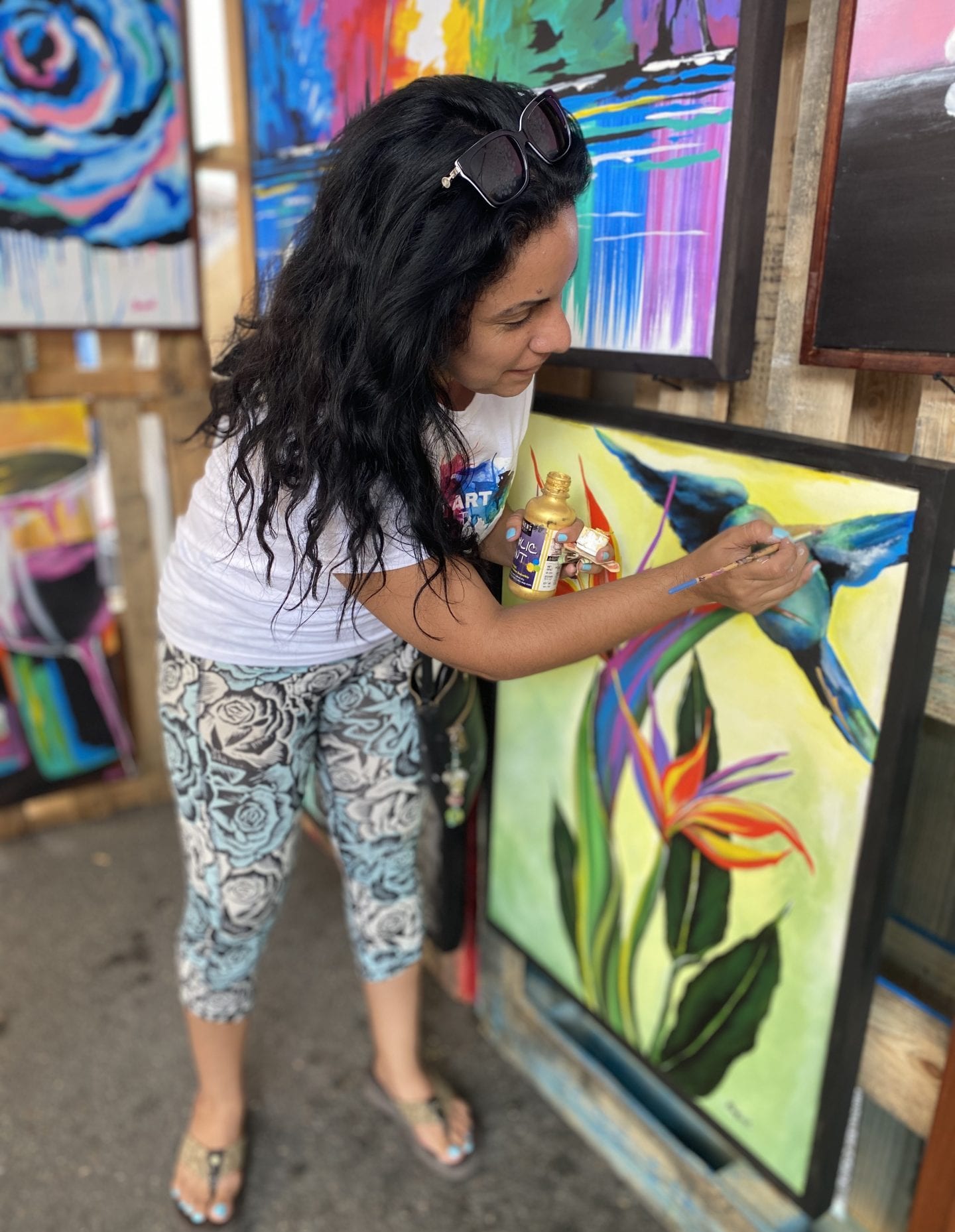 - Local artist Raquel Rodriguez paints at the Sidewalk Art Festival. Images courtesy Carolee Chanona