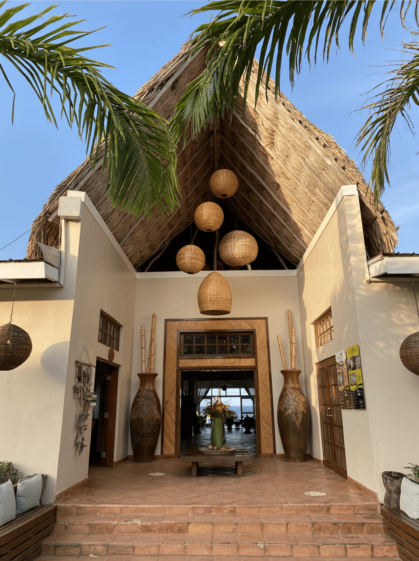 Except for the squally unquiet Great-tailed Grackle, everything seemed to hold its breath at dawn: the jutting foliage amidst semi-thatched dwellings, almost-arrogant egrets, and a well-fed iguana strewn out on the property’s (now decorative) dugout canoe. Inhaling deep while swirling my room-brewed coffee in hand, I gaze out from my second-story Seaview Villa onto an equally quiet sunrise: cloud cover mutes the fiery ball ahead, leaking tones of orange and pink into my balcony.