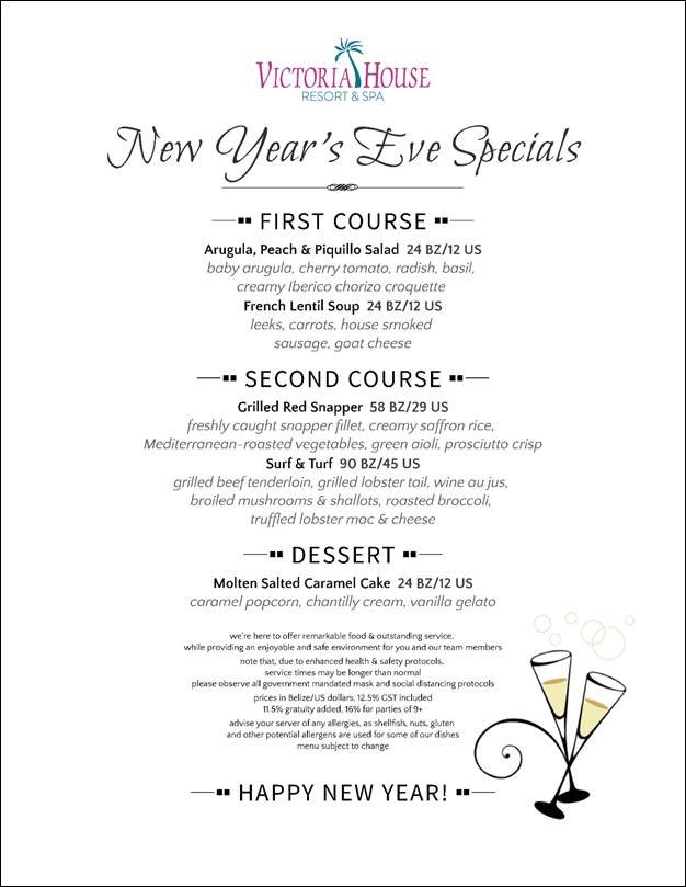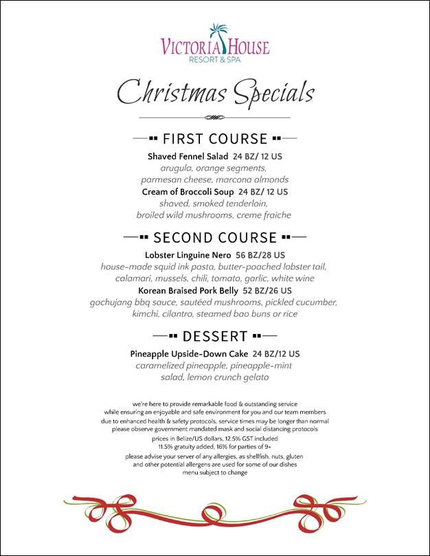 Victoria House Resort & Spa, Belize, an award-winning beachfront resort on the largest of the offshore Belizean islands, Ambergris Caye, is preparing decadent three-course Christmas and New Year’s Eve dinners for guests. After all, it’s already shaping up for a memorable Caribbean Christmas and New Year celebration in paradise.