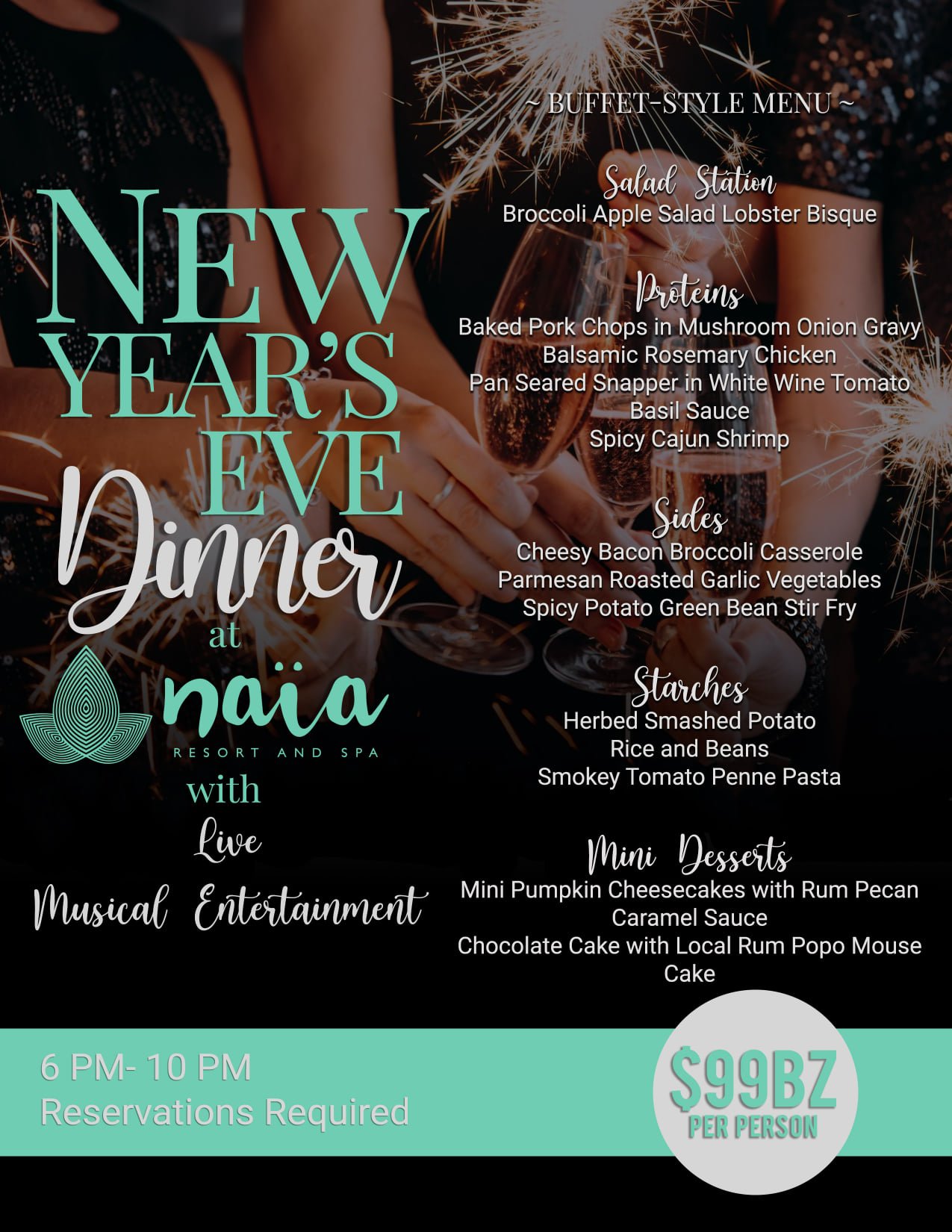 And if an early dinner is in the cards for New Year’s Eve instead, Sea Salt’s first seating is done at 5:30 PM, although reservations are required. There’ll be live music and bubbly toast, plus highlights like poached stone crabs, scallops and pork belly, and beef tomahawk. Dine for US$105 per adult (kids get half off).