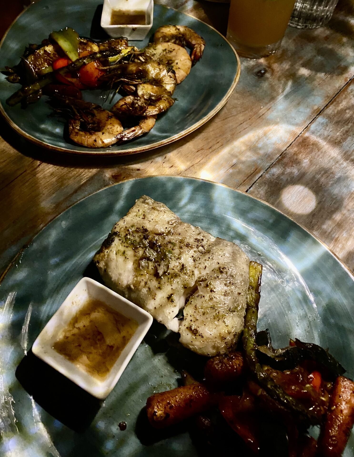 The menu is decided by the availability of ingredients and the chef’s creativity each day. So, no two 4-course meals are ever the same. Using the traditional method of cooking, the woody scent of smoke from the fire hearth mingles in the fresh salt air with night-blooming jasmine and roasting herbs. Soft lighting and the rhythmic lapping of the sea upon the shore complete the effect for a whimsical and romantic setting.