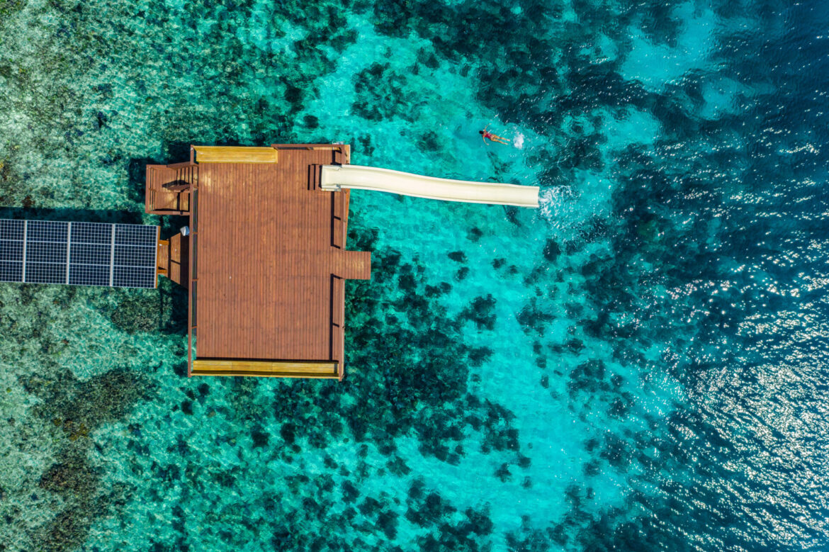 There are plenty of sun loungers scattered throughout the 7 square acres of coastlines, gardens, and pools-–with plenty to entertain yourself with. If your R&R includes recentering through intentional movement, Ray Caye boasts its own wellness center; think of a yoga deck, spa, and gym with all the amenities you need on vacation. Or, head outdoors (and offshore) with stand-up paddleboarding, kayaking, snorkeling, scuba scooter, Hobie cats, and bonus points…a saltwater slide. Adrenaline junkies can craft specialty diving tours at the on-site Pirate Reef Dive Shop and Center, prepared to equip you with everything you need from guidance and advice to instruction and certification.
