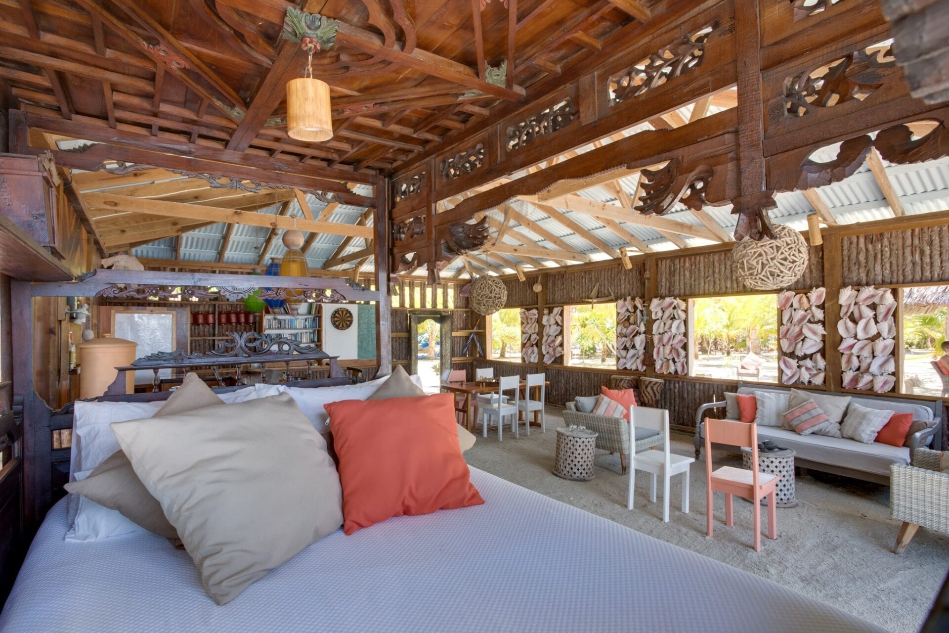 - Enjoy sandy comforts inside Coral Caye’s Great House.