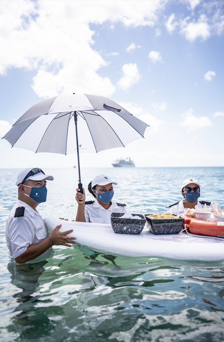 Belize partners were hosted onboard the Seabourn Ovation for its maiden call ceremony on February 16, 2022. Image via the Belize Tourism Board