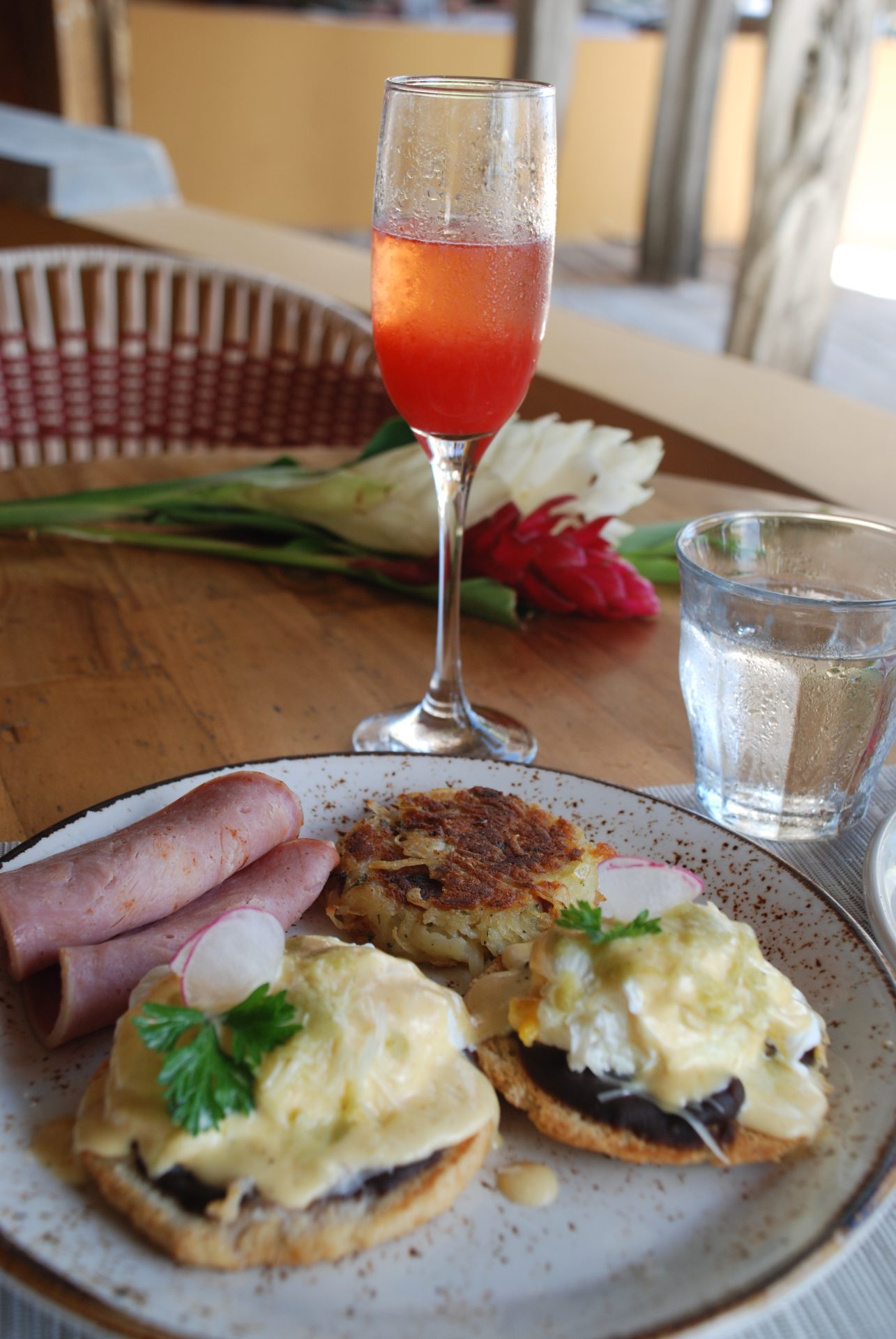 Getting up there can be either by boat or driving up the north road. As you arrive, you are greeted by their staff that automatically make you feel right at home. You can reach any time after 10 am and indulge yourself in the brunch pampering until 2 pm. I was immediately guided to the sea view seating area of the restaurant and offered a menu for that Sunday’s brunch. The choices ranged from fried chicken and waffles to chilaquiles, sweet or savory crepes, to omelets of your choice, brunch burgers, and even lobster rolls when in season.